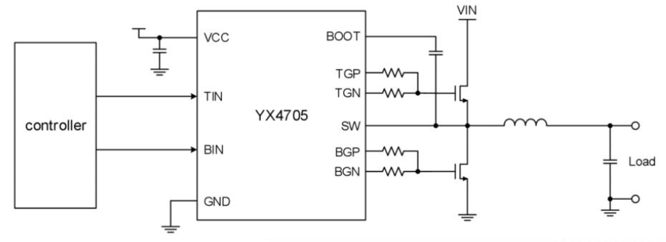 YX4705設(shè)計(jì)用于驅(qū)動(dòng)采用同步降壓 ,升壓或半橋配置的高邊和低邊增強(qiáng)型氮化鎵(GaN)FET和VTH MOSFET。
