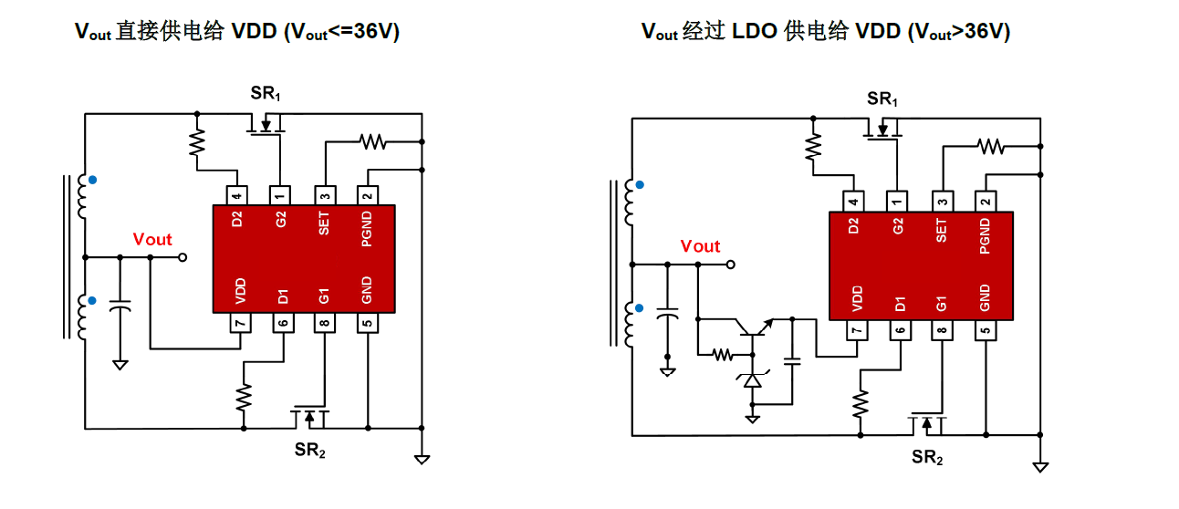 其芯片 MOSFET 漏極檢測(cè)腳耐壓高達(dá)200V,VDD 工作范圍 4V ~ 38V,使得它可以適用于寬范圍輸出電壓,滿足不同應(yīng)用場(chǎng)合的需求。